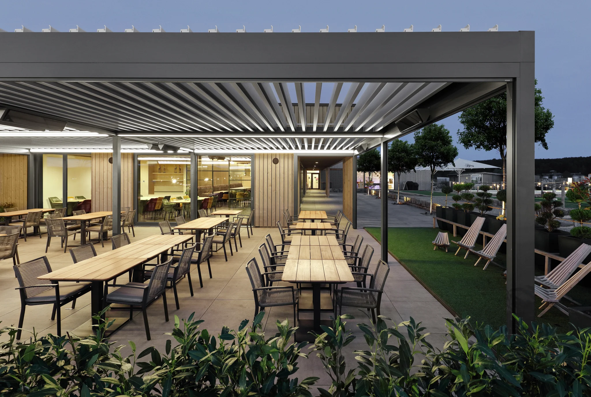 Atmosphäre im Außenbereich, die zum Bleiben einlädt.