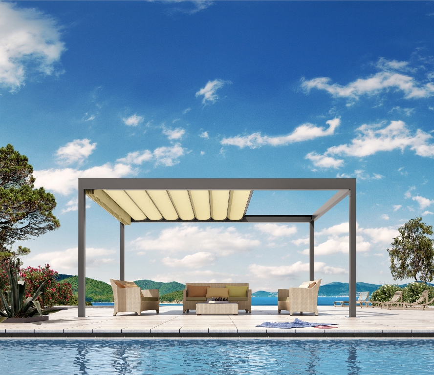 Das Klaiber BAVONA TP6100 kombiniert ein elegantes Pavillon-Design mit einer flexiblen Faltmarkise. Die textile Überdachung bietet zuverlässigen Sonnen- und Regenschutz und kann optional mit LED-Beleuchtung und Seitenelementen erweitert werden.